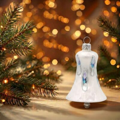 Dieses Glocken-Set besteht aus zwei 5 cm großen Glocken. Ein unsichtbares Läuten, das ganz still die Seele berührt, durch Ihr einzigartiges weißes Frost-Icing-Design. Mit Ihrem blau glänzenden Tropfen hebt es das noch besonders hervor. -