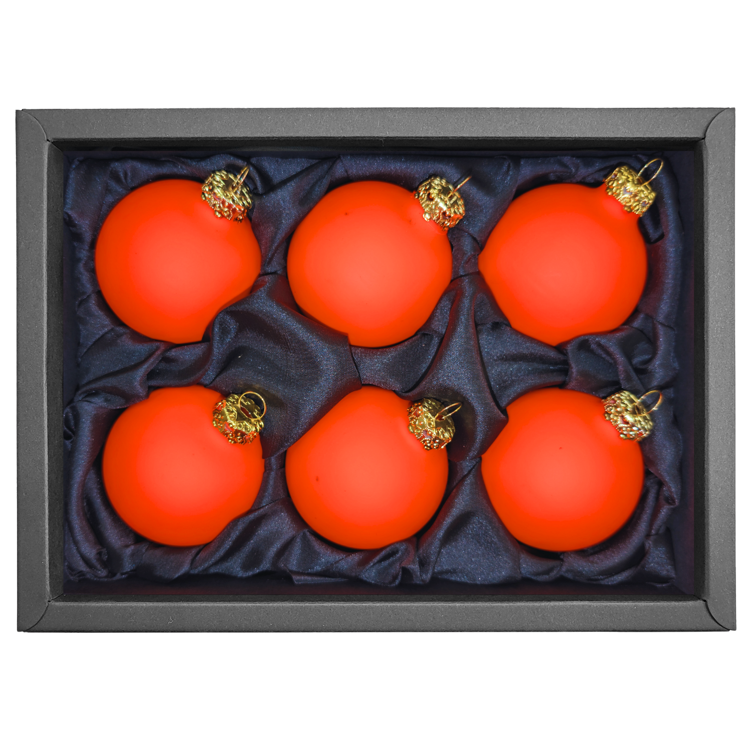 Mit dem GlasWunder Christbaumschmuck Neon Orange setzt Du ein leuchtendes Statement in deiner festlichen Dekoration. Dieses exklusive 6er Set vereint traditionelle Glasbläserkunst mit modernem Farbdesign und sorgt dafür, dass dein Weihnachtsbaum in einem außergewöhnlichen Licht erstrahlt. Jede Kugel ist ein handgefertigtes Unikat: Zunächst wird sie von erfahrenen Glasbläsern mundgeblasen, bevor sie in präziser Handarbeit bemalt wird. Das macht jede Kugel einzigartig und zu einem kleinen Kunstwerk für dein Zuhause. Mit einem Durchmesser von 6 cm sind die Kugeln perfekt proportioniert – groß genug, um aufzufallen, aber dezent genug, um sich harmonisch in verschiedene Dekorationsstile einzufügen. Die Farbe Neon Orange verkörpert Energie, Lebendigkeit und Wärme. Sie verleiht deinem Weihnachtsbaum einen modernen, frischen Look und bringt eine dynamische Note in die klassische Festtagsdekoration. Besonders in Kombination mit Gold, Weiß oder sattem Grün entsteht ein edles, kontrastreiches Gesamtbild. Wer es trendig mag, kombiniert Neon Orange mit weiteren Neonfarben wie Pink, Blau oder Gelb und kreiert so einen farbenfrohen, jugendlichen Look. Die Kugeln verfügen über eine edel schimmernde Oberfläche, die den leuchtenden Orangeton stilvoll unterstreicht. Dank der sorgfältigen Verarbeitung sind sie langlebig und werden dir viele Jahre Freude bereiten. Geliefert werden die Schmuckstücke in einer stabilen, eleganten Box, die sie nicht nur schützt, sondern auch eine ansprechende Geschenkverpackung darstellt. So eignet sich der GlasWunder Neon Orange Christbaumschmuck auch perfekt als besondere Geschenkidee für Familie, Freunde oder Liebhaber moderner Weihnachtsdekoration. Ob an einem prächtigen Tannenbaum, in festlichen Adventsgestecken oder als kreatives Highlight in Tisch- und Raumdekorationen – diese Kugeln sind vielseitig einsetzbar. Sie schaffen ein fröhliches, modernes Ambiente und bringen zugleich die traditionelle Handwerkskunst zum Strahlen. Mit dem Christbaumschmuck Neon Orange von GlasWunder holst du dir nicht nur außergewöhnliche Farbe, sondern auch echte Handarbeit ins Haus. Setze leuchtende Akzente, feiere Weihnachten mit Stil und machen Sie Ihren Baum zu einem unvergesslichen Blickfang.