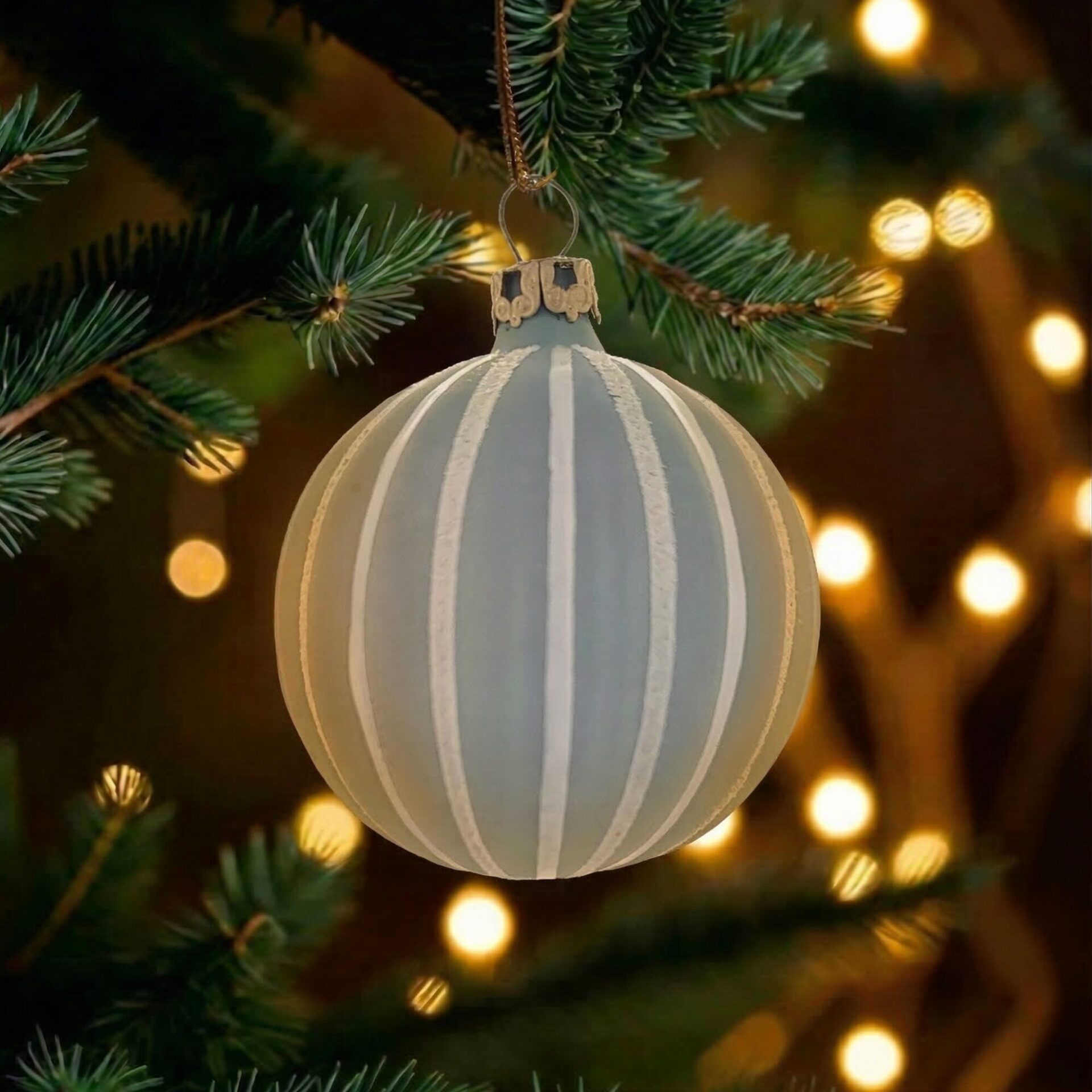 Dieses Set, bestehend aus 6 Kugeln à 6 cm in anmutigem matten Softblau und weißen Rillen, ist clean und modern zu gleich. Ein klassisches Design vereint mit einem frischen, aufgeweckten Farbton.