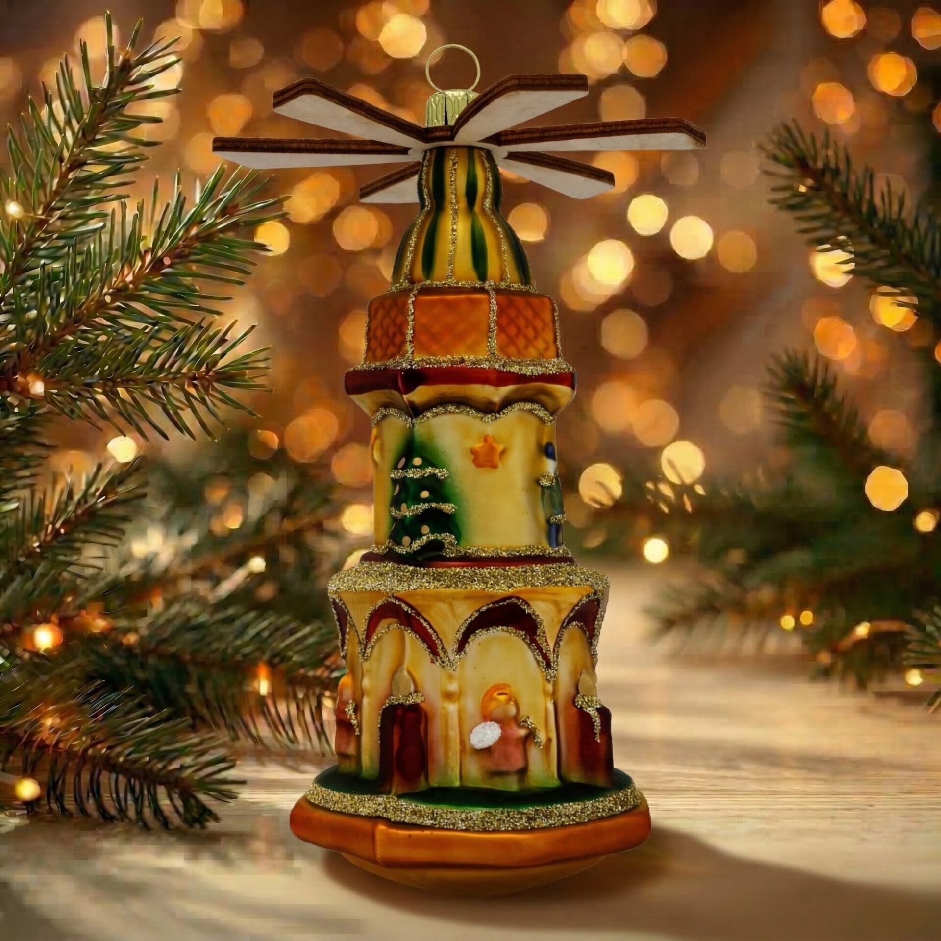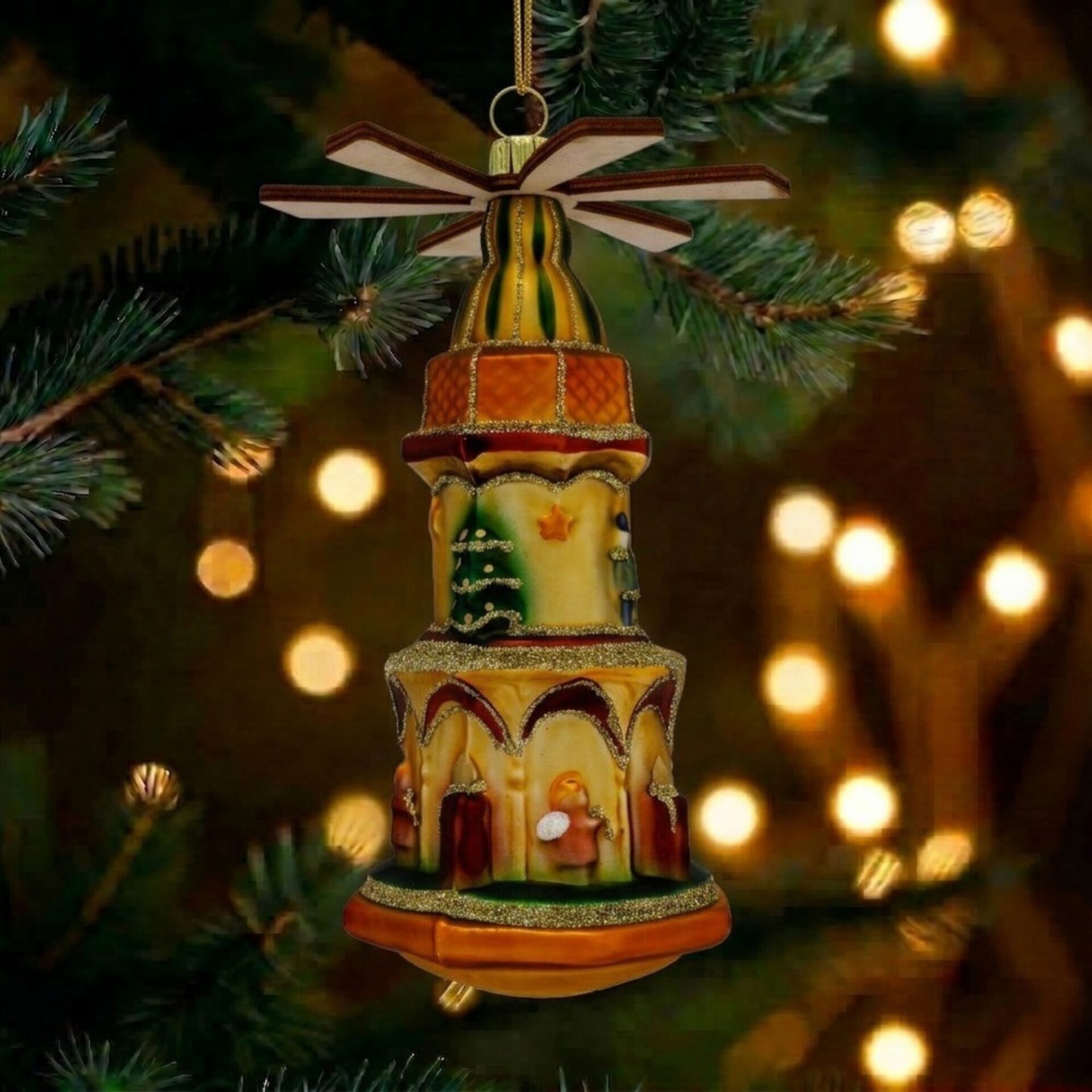 Die Christmas Pyramid Weihnachtspyramide aus Glas vereint klassische Festlichkeit und liebevolle Handwerkskunst. Ein elegantes Highlight, das deiner Weihnachtsdekoration lebendige Stimmung und zauberhaften Glanz schenkt.