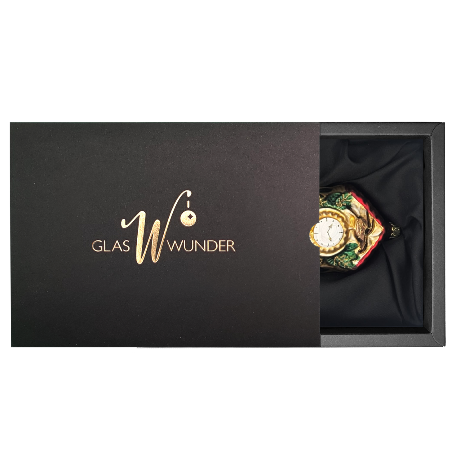 Christbaumschmuck aus Glas in Form einer Kuckucksuhr ist ein bezauberndes und nostalgisches Highlight für den festlich geschmückten Weihnachtsbaum. Diese kunstvoll gestalteten Glaskuckucksuhr fängt 5den Charme traditioneller Schwarzwälder Uhren ein und versprühen ein Gefühl von Heimat und Gemütlichkeit. Mit filigranen Details und leuchtenden Farben bringt dieser Schmuck nicht nur den Glanz der Weihnacht, sondern auch die Freude an traditionellen Handwerken in Ihr Zuhause. Wenn die Kuckucksuhr in der Höhe der Äste schwingt, erinnert sie an fröhliche Zeiten und das Zusammensein mit Familie und Freunden – perfekt für eine besinnliche Weihnachtszeit.