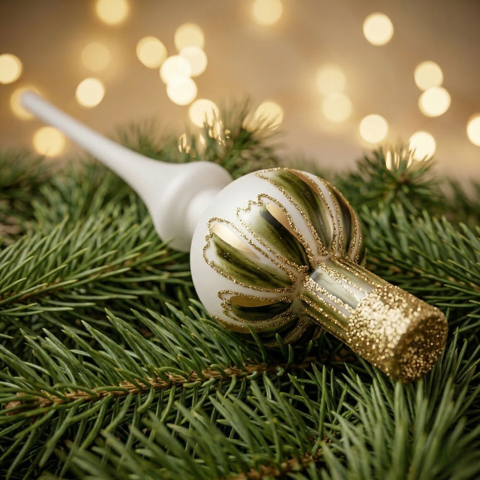 Die Emerald Glory Spitze aus Glas begeistert durch ihre edle, tiefgrüne Farbgebung und fein ausgearbeitete Struktur. Sie verleiht deiner Weihnachtsdekoration eine besondere Eleganz und einen Hauch von luxuriösem Glanz.
