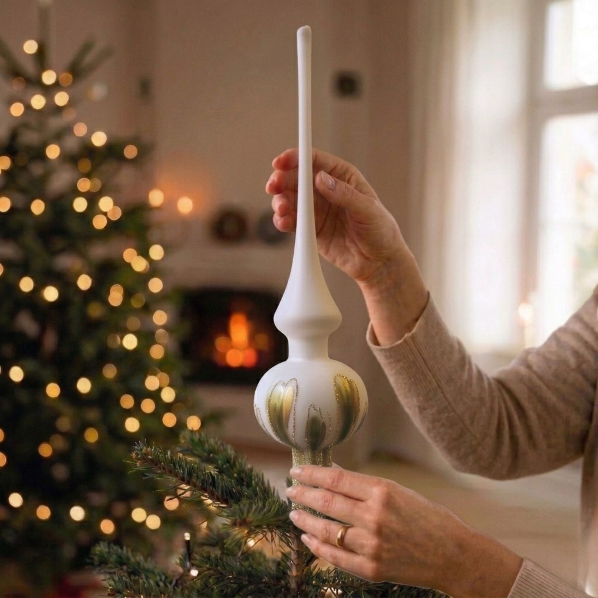 Durch die liebevolle Detailarbeit wirkt die Spitze lebendig und elegant, fast so, als würde sie im Licht tanzen. Die hochwertige Verarbeitung unterstreicht die Qualität dieses besonderen Glasstücks und macht es zu einem charmanten Highlight an deinem Weihnachtsbaum oder in deiner Winterdekoration.
