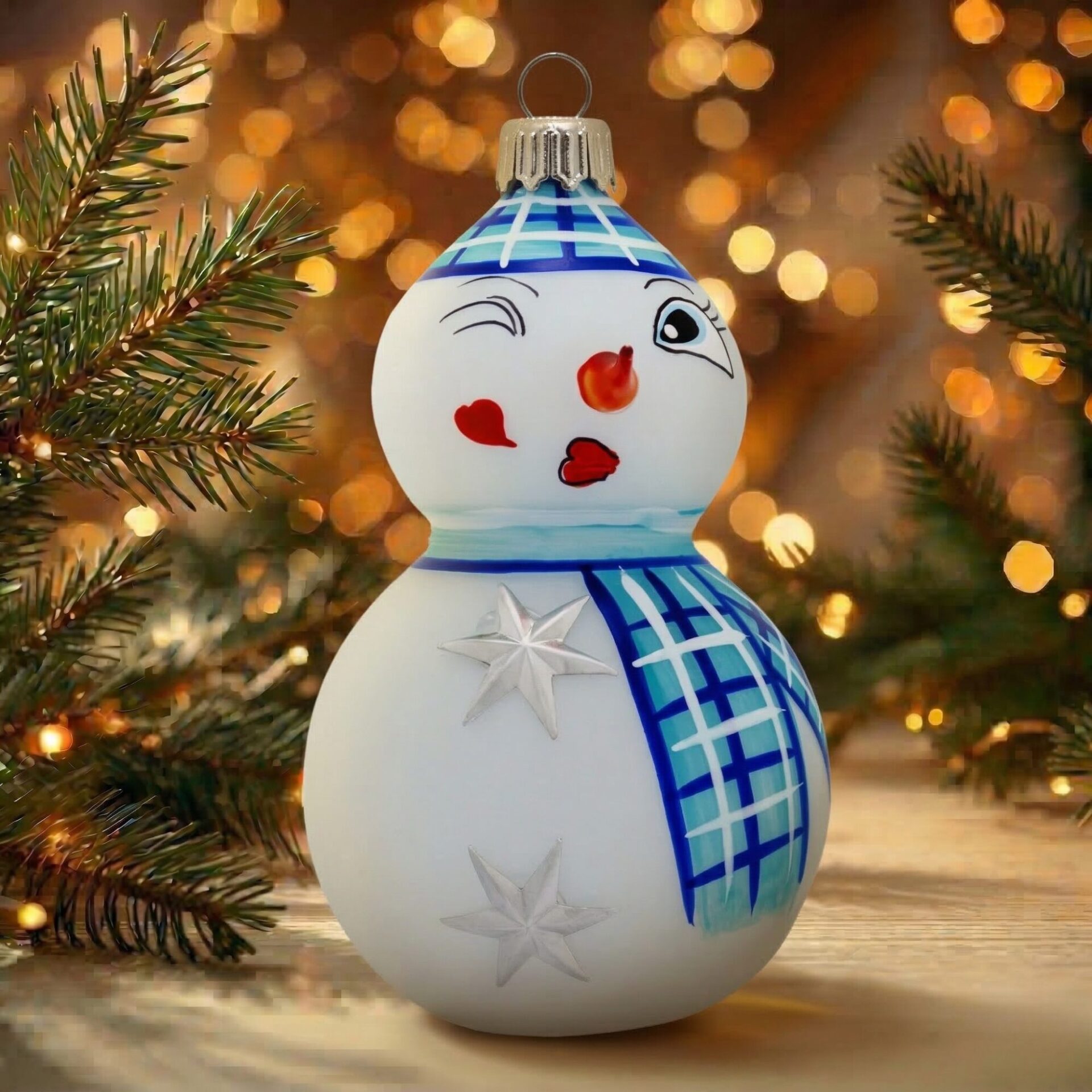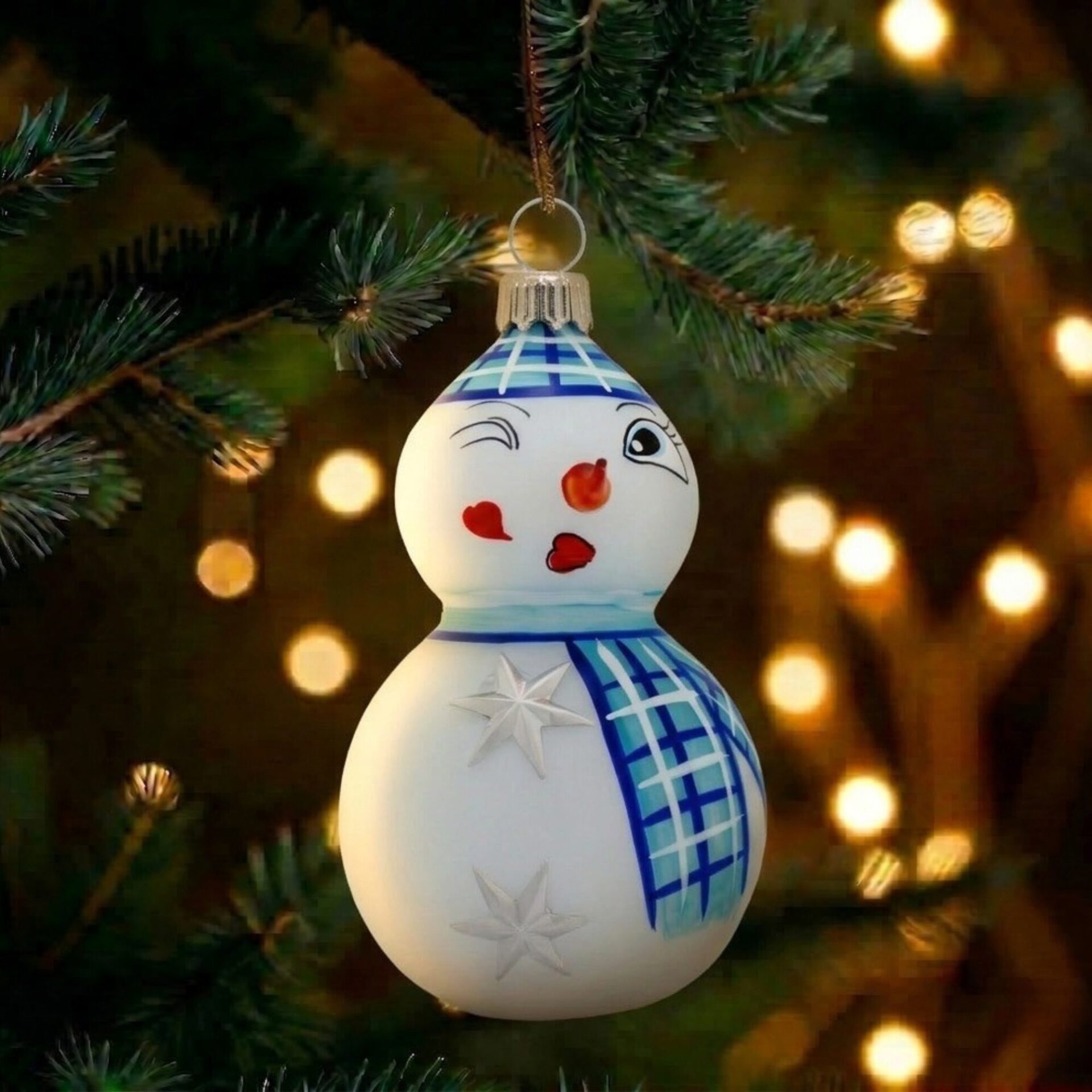 Die Hildegard Schneefrau ist ein kunstvoll gestaltetes Glasornament, dessen zarter Schimmer und liebevolles Design sofort ins Herz fallen. Ihr freundlicher Blick und die sanfte Farbgebung bringen ein Gefühl von festlicher Wärme und winterlicher Gemütlichkeit in deine Weihnachtsdekoration.