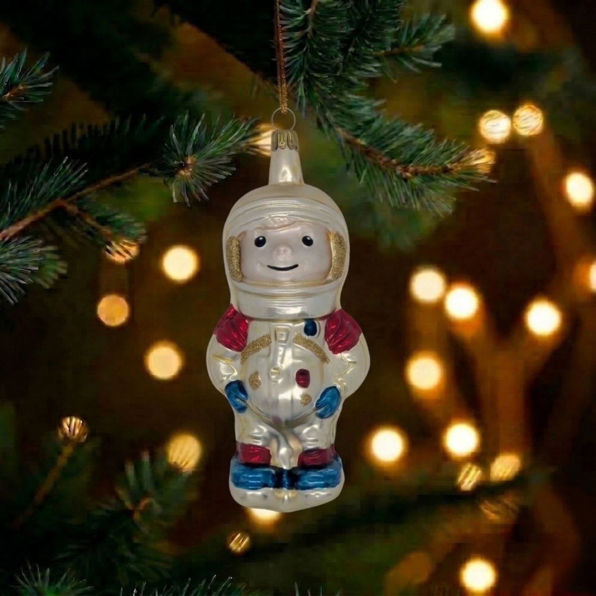 Stell dir vor, du hast einen Christbaumanhänger in Form eines kleinen Astronauten aus Glas! Er glitzert im Lichterglanz und schwebt förmlich zwischen den Tannenzweigen. Mit seinem freundlichen Gesicht und dem glänzenden Raumanzug bringt er das Gefühl von Abenteuer und Freiheit in dein Wohnzimmer. Während du den Baum schmückst, fühlt es sich fast so an, als würde der Astronaut bereit sein, in die unendlichen Weiten des Alls aufbrechen. Ein perfektes Stück, um die Feiertage mit einem Hauch von Staunen und kindlicher Freude zu füllen! Weihnachten wird nie wieder gleich sein!