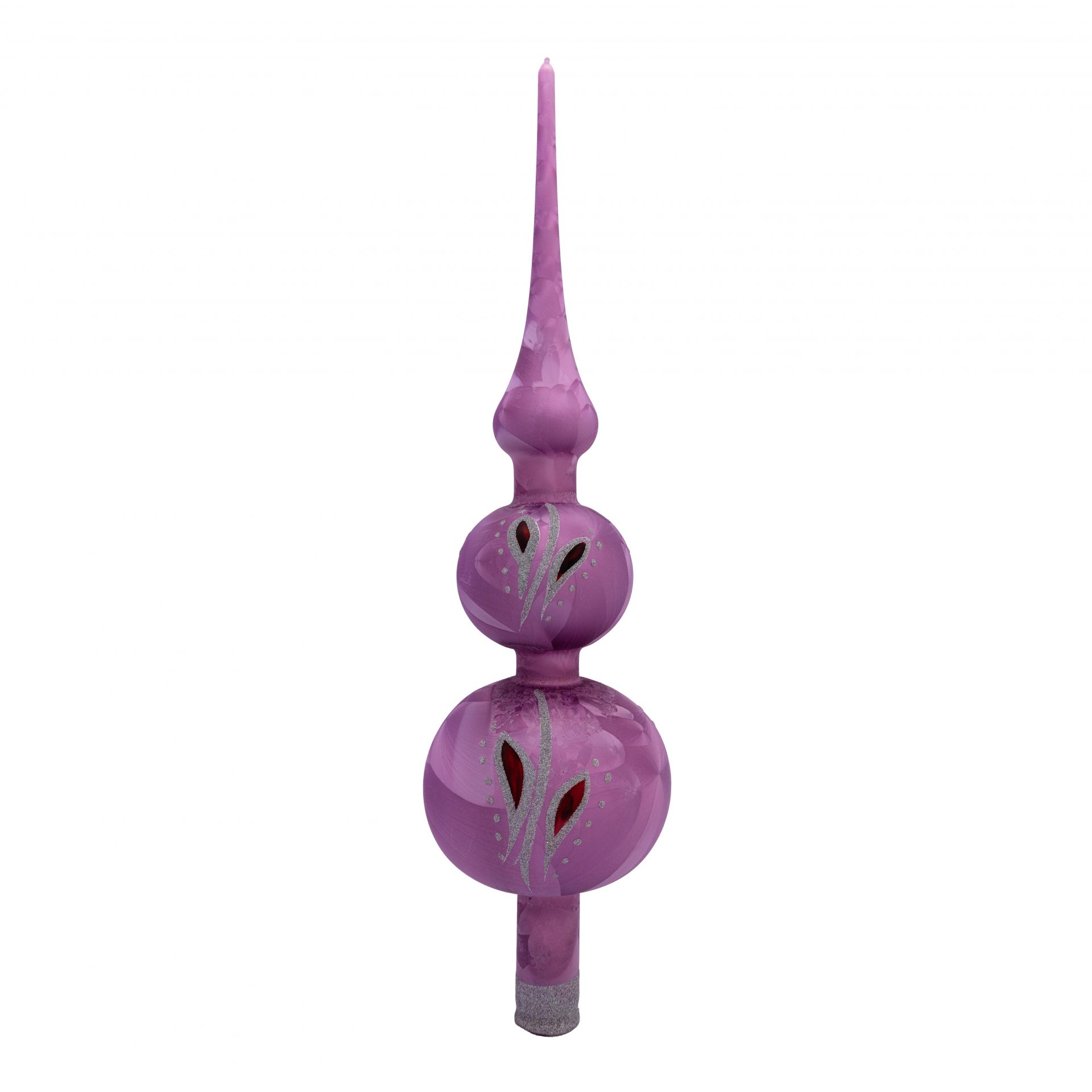 Diese Spitze aus Glas ist 31cm groß und hebt deinen Weihnachtsbaum ganz besonders hervor. Mit Ihrem zarten matten Rosafarbton und dem besonderen Icing-Design ist es ein toller Hingucker. Hinzu kommen die auffälligen Roten Tropfen an den Glasbäuchen. Ein tolles Unikat!